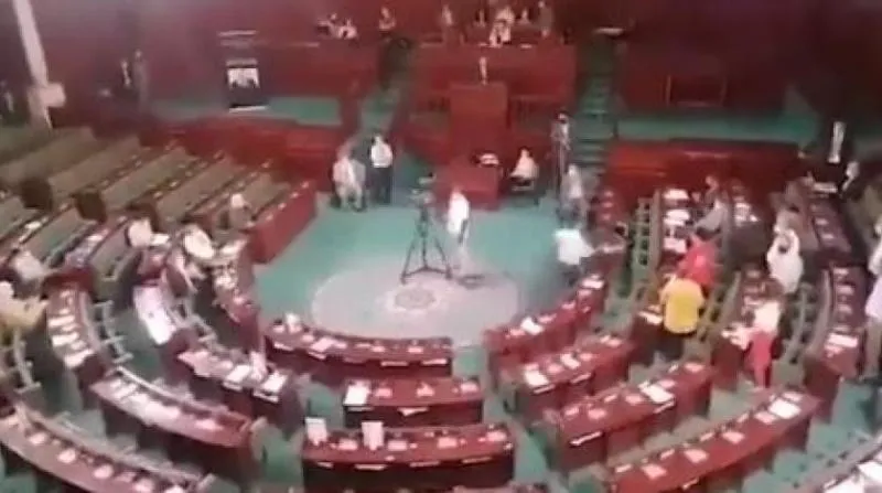 وتمثل الحادثة أحدث أعمال العنف والفوضى التي اجتاحت أكثر من مرة جلسات البرلمان الصاخبة في تونس.