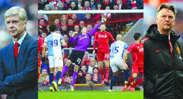 لويس فان غال - مينيوليه حارس ليفربول ينقذ كرة بابتستا لاعب بلاكبيرن (رقم 15) ليذهب الفريقان لمباراة إعادة (أ.ب) - أرسين فينغر