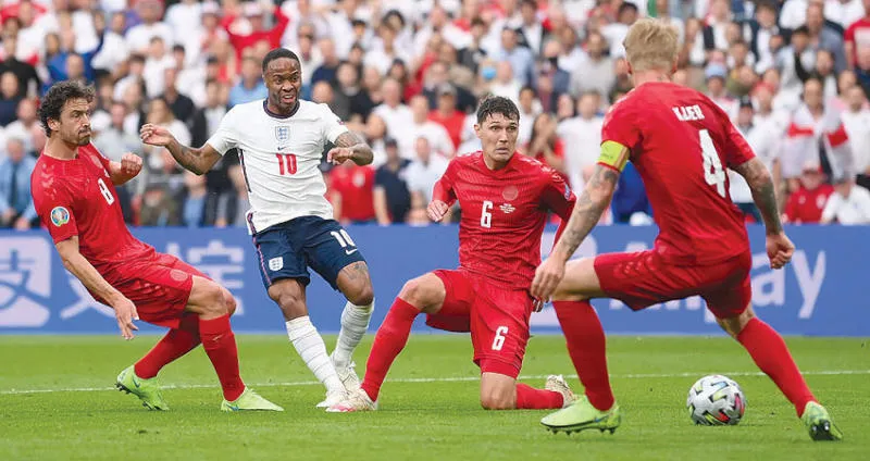 رحيم سترلينغ أمام الدنمارك في نصف نهائي «يورو 2020» (أ.ف.ب)