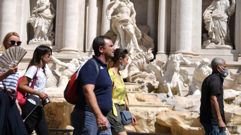 سياح يتجولون دون كمامات في روما (أ.ف.ب)