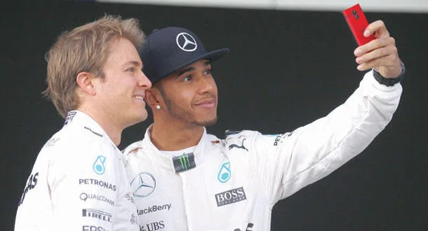 هاميلتون البطل وروزبرغ الوصيف زميلان في «مرسيدس» ومتنافسان على المضمار (أ.ب)