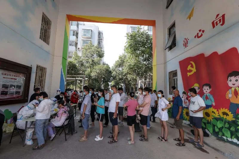 إجراء فحوصات لسكان مدينة نانجينغ الشرقية بعد تفشي فيروس كورونا (أ.ف.ب)