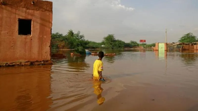 طفل يقف في شارع غمرته المياه في أم درمان (أرشيفية - أ.ف.ب)