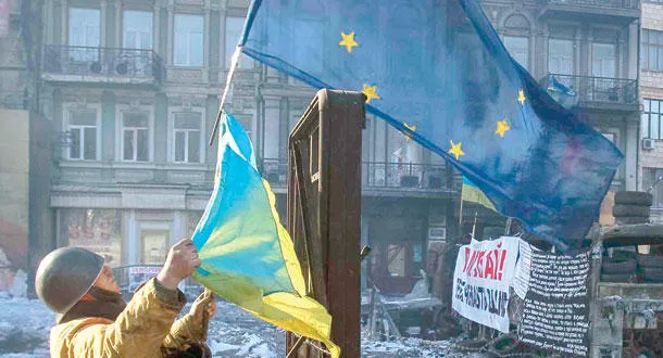 اندلعت المظاهرات العارمة وتحولت مع مرور الزمن إلى دامية، بين فريقين أحدهما يدفع في اتجاه أوروبا واتحادها وهو جانب المعارضة.. وآخر في اتجاه الدب الروسي، وهي الرئاسة والحكومة والنظام. تحولت الأمور رويدا إلى ما يشبه الربيع العربي. المعارضة احتلت الميادين، والساحة المسماة بـ«الميدان» رافعة شعارات لمحاربة الفساد، والحلم الأوروبي. أقامت الخيام، وافترش المحتجون الأرض، ونظموا حياتهم بطريقة جديدة تشبه حالة عصيان، بينما يدخلون من ساعة إلى أخرى في صدامات مع رجال الأمن. وأعدادهم تزدادا يوما بعد يوم ليصلوا إلى مئات الآلاف.