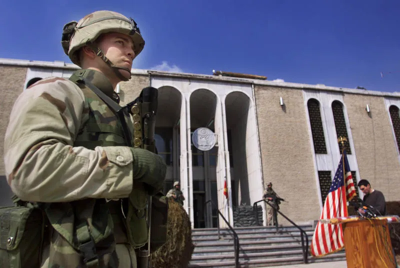 جنود أميركيون أمام سفارة بلادهم في كابول (أ.ب)