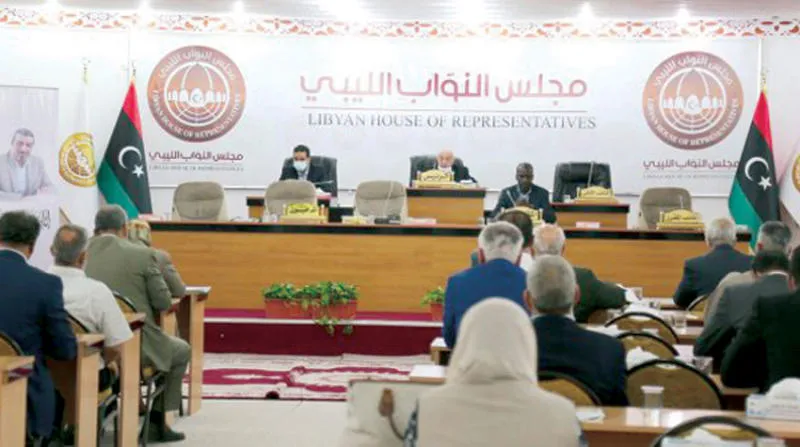 مجلس النواب الليبي خلال انعقاده أول من أمس (الموقع الرسمي للمجلس على الإنترنت)