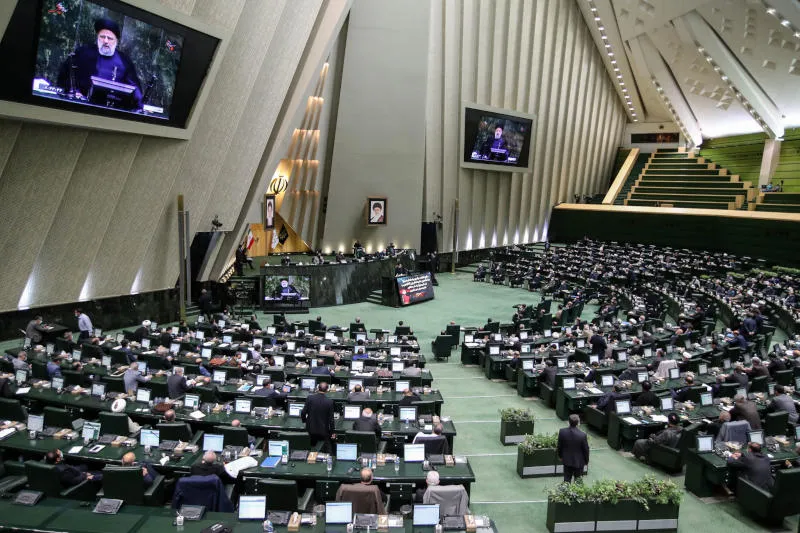 الرئيس الإيراني إبراهيم رئيسي يلقي كلمته في مجلس الشورى (د.ب.أ)