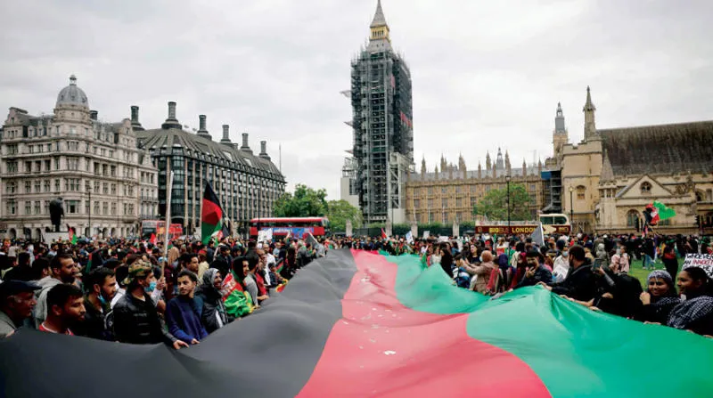 الآلاف يتظاهرون في لندن احتجاجاً على استيلاء الحركة على الحكم في أفغانستان