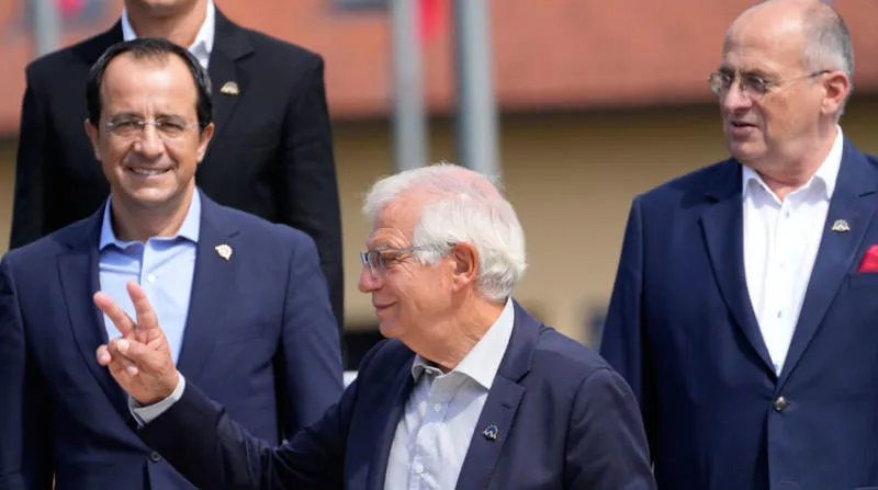وزير خارجية الاتحاد الأوروبي جوزيب بوريل خلال اجتماع وزراء خارجية الاتحاد في سلوفينيا أمس (أ.ب)