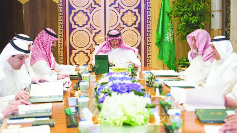 الأمير محمد بن نايف لدى ترؤسه اجتماع المجلس فيما يبدو الأمير محمد بن سلمان والوزراء الأعضاء (واس)