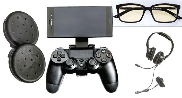 نظارات أوبتكس من «غنر»  -  سماعة الرأس «أسترو ايه 38»  -  «بي إس4 إس ديوال شوك4» لممارسة الألعاب على الهاتف «إكسبيريا»  -  ذراع التحكم لأصبع الإبهام «ألفا»