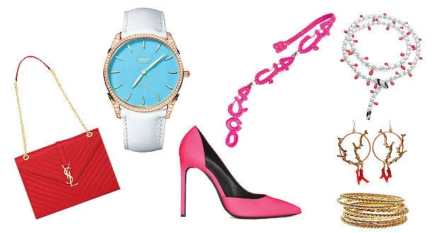 * رغم عشق المرأة لحقائب اليد والأحذية، فإنه من الصعب على الرجل أن يوفق في اختيار المناسب، أو أن يتوقع ما قد يروق لها؛ لأن المسألة هنا تتعلق بذوق شخصي جدا. ومع ذلك هناك ماركات لا يمكن أن تخيب، وقليلات جدا هن اللواتي لا يمكن أن يسعدن بحذاء أو حقيبة منها، مثل «سان لوران»؛ فكل ما تطرحه هذه الدار يثير الحلم ويدخل السعادة على النفس؛ نظرا لجودته العالية واهتمام المصمم إيدي سليمان بأدق التفاصيل. لهذا إذا كنت تريد أن تضمن سعادتها، نقترح عليك هذا الحذاء بلون الفوشيا أو هذه الحقيبة الحمراء اللون. بحجمها وتصميمها تناسب النهار والمساء على حد سواء.