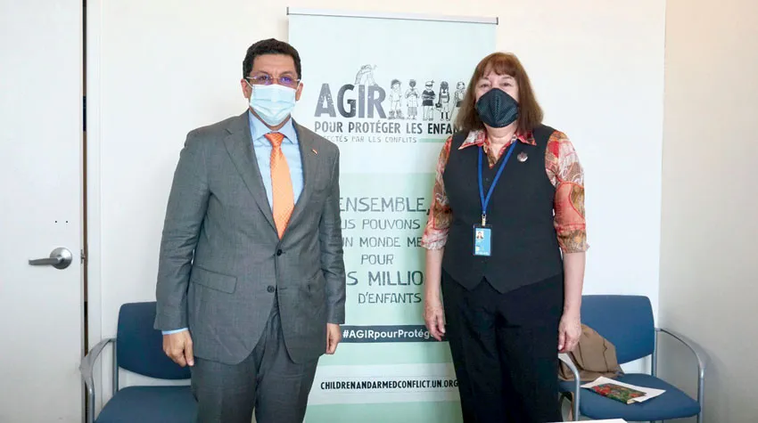 وذكرت المصادر الرسمية أن بن مبارك التقى وكيلة الأمين العام للأمم المتحدة للأطفال والنزاع المسلح، فرجينيا جامبا، وأكد التزام بلاده «بكل القواعد الدولية المتصلة بحماية الأطفال والحرص على تنفيذ خريطة الطريق وبناء قدرات المؤسسات الحكومية المعنية بحماية ومنع تجنيد الأطفال، والتنسيق مع جميع الجهات الدولية الفاعلة لوضع حد لانتهاكات الميليشيات الحوثية للقانون الدولي الإنساني وحشد الأطفال من خلال المعسكرات الصيفية واستخدامهم في حربها ضد اليمنيين، والعمل على إعادة دمج وتأهيل الناجين منهم».