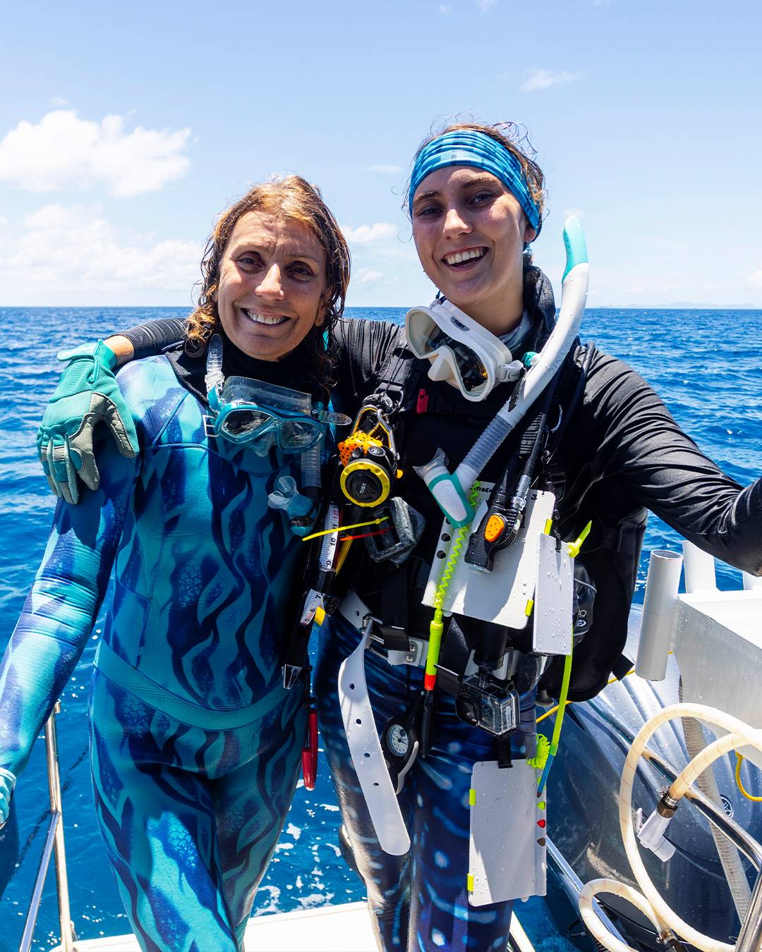 صوفي كالكوفسكي بوب ووالدتها جان بوب تغوصان لاستكشاف المستعمرة (منظمة «مواطنو الشعاب المرجانية»)