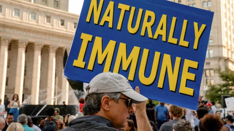 مظاهرة ضد إلزامية اللقاح في نيويورك الاثنين (رويترز)
