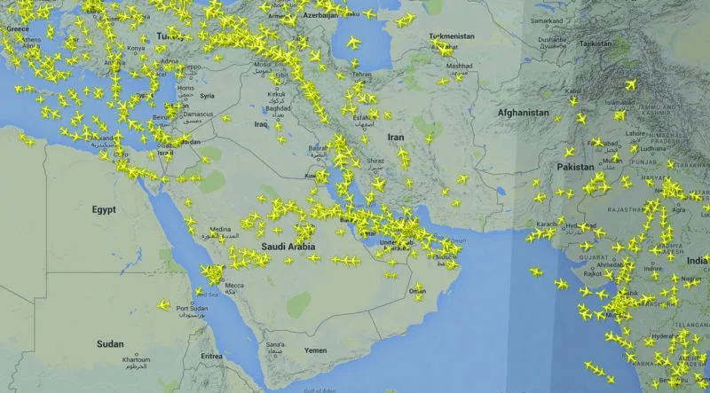 رصد موقع «فلايت رادار 24» الخاص بالرصد الحي للطيران الجوي توقف جميع الطائرات المدنية في الأجواء اليمنية أمس («الشرق الأوسط»)