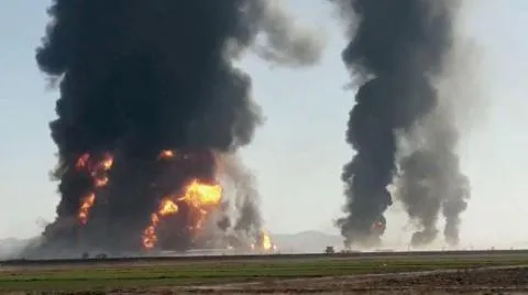 جانب من الحريق الضخم الذي سببه الانفجار أمس (رويترز)