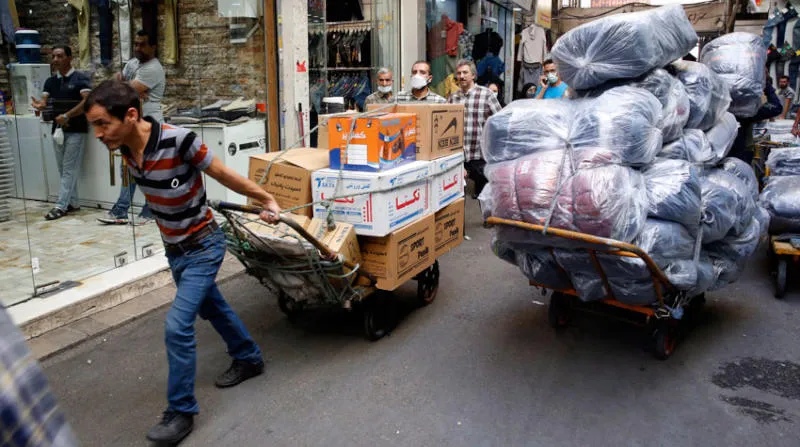 عمال إيرانيون في البازار الكبير بطهران أمس (إ.ب.أ)