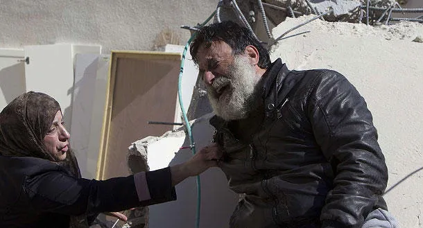 فلسطيني ينتحب بعد أن هدمت جرافات إسرائيلية أمس منزله في القدس الشرقية (أ.ف.ب)