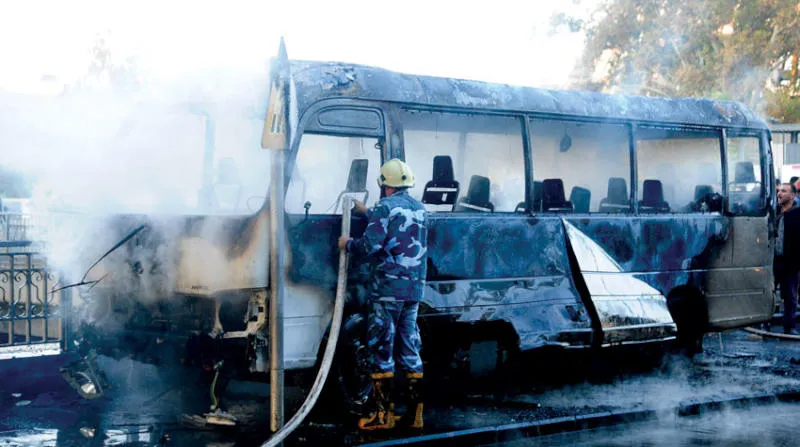 تفجير حافلة تقل عسكريين في دمشق في 20 من الشهر الحالي (أ.ف.ب)