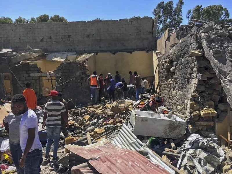 أنقاض مبنى مدمر في تيغراي بعد غارة جوية (أ.ب)