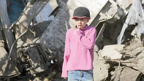 طفل عراقي يقف بين مخلفات تفجير سيارة مفخخة في منطقة العبيدي غرب بغداد حيث انفجرت ست سيارات مفخخة بالعاصمة العراقية أمس (أ.ف.ب)
