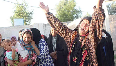 عراقية تنتحب في جنازة أحد ضحايا تفجير استهدف مسجدا في بعقوبة أول من أمس (رويترز)