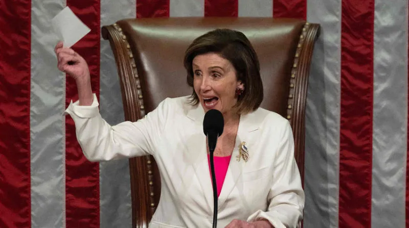 نانسي بيلوسي رئيسة المجلس تتحدث عن المشروع الذي يطلق عليه الديمقراطيون اسم: «إعادة البناء بشكل أفضل» (أ.ف.ب)
