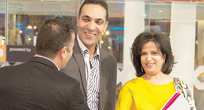 الشيخة مي بنت محمد آل خليفة مع الدكتور إيلي فلوطي رئيس اللجنة التنظيمية، أثناء افتتاح مهرجان «تاء الشباب 5»