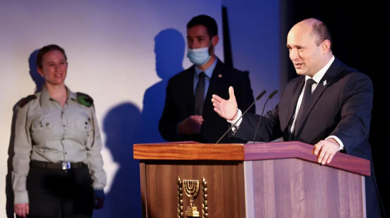 رئيس الوزراء الإسرائيلي نفتالي بينيت يلقي كلمة الأسبوع الماضي في القدس (رويترز)