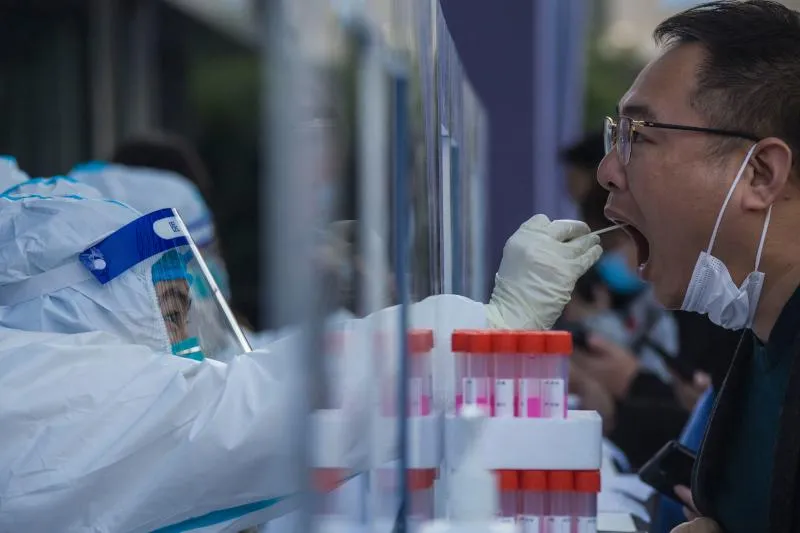 رجل يضخع لاختبار كشف فيروس كورونا في الصين (أ.ف.ب)