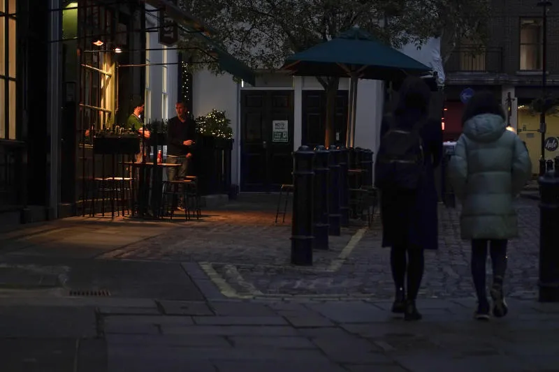 أشخاص يقفون خارج مطعم في لندن (أ.ب)