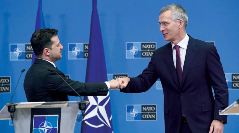 وقال الأمين العام للحلف ينس ستولتنبرغ بعد اجتماع مع الرئيس الأوكراني فولوديمير زيلينسكي في مقر التحالف في بروكسل: «لن نساوم على حق أوكرانيا في اختيار طريقها، ولن نساوم على حق الناتو في حماية جميع الحلفاء والدفاع عنهم، ولن نساوم على حقيقة أن لدى الناتو شراكة مع أوكرانيا»، كما نقلت عنه وكالة الصحافة الفرنسية.