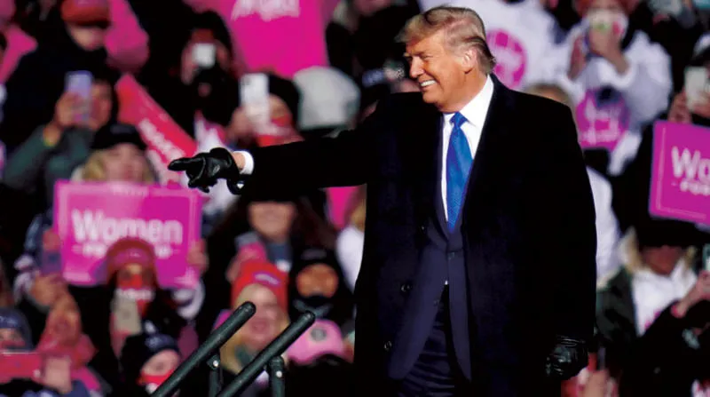 ترمب خلال حملة انتخابية في أكتوبر 2020 بمدينة أوماها (ولاية نبراسكا) (أ.ب)