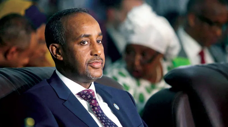 رئيس الوزراء محمد حسين روبلي خلال اجتماع في مقديشو مايو الماضي (رويترز)