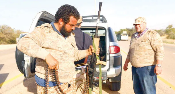 مقاتلون موالون لقوات فجر ليبيا يعدون أسلحتهم في مدينة سرت بعد ازدياد المواجهات بينهم وبين {داعش} (أ.ف.ب)