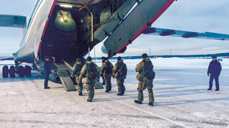 قوات روسية تستعد للمغادرة إلى كازاخستان على متن طائرة عسكرية أمس (إ.ب.أ)
