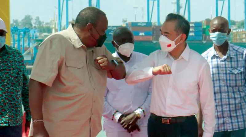 الرئيس الكيني مع وزير الخارجية الصيني (أ.ف.ب)