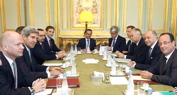 ودعا الرئيس الفرنسي فرنسوا هولاند ووزيرا الخارجية الأميركي جون كيري والبريطاني ويليام هيغ خلال المحادثات التي شارك فيها وزير الخارجية الفرنسي لوران فابيوس إلى جدول زمني دقيق لضبط الأسلحة الكيماوية وإتلافها.
