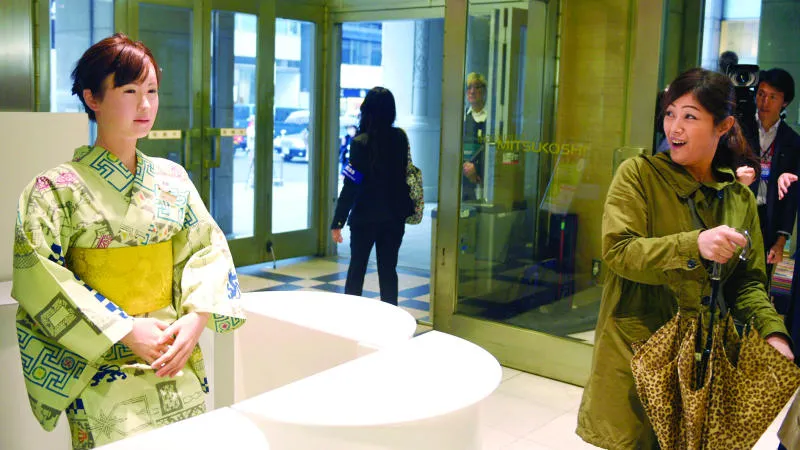 وفي تجربة واقعية أخرى وقفت «إيكو تشيهيرا» مبتسمة وهي ترتدي الكيمونو الياباني التقليدي تستقبل المتسوقين في متجر «ميتسوكوشي» بالعاصمة اليابانية طوكيو، لكنها لم تكن من موظفات المتجر العاديات بل هي إنسانة آلية. كان هذا أول ظهور علني لهذه الإنسانة الآلية التي تشبه البشر والتي طورتها «توشيبا» العام الماضي في تجربة جديدة للتفاعل مع الزبائن.