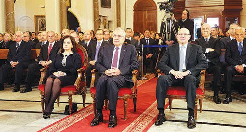 الرئيس اللبناني ميشال سليمان لدى حضوره قداسا في كنيسة سان مارون في وسط بيروت أمس (دالاتي ونهرا)