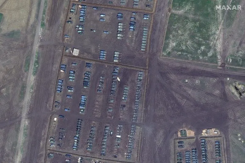 صورة بالأقمار الصناعية تُظهر حشداً عسكرياً روسياً قرب الحدود مع أوكرانيا (رويترز)