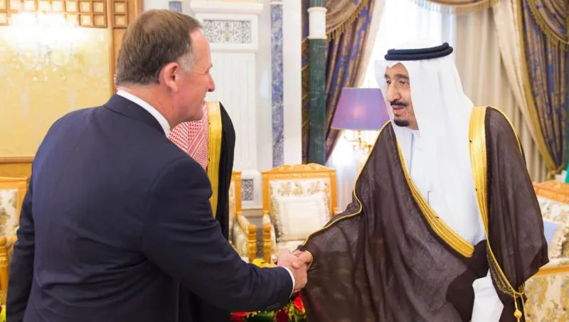 استقبل خادم الحرمين الشريفين الملك سلمان بن عبد العزيز، في مكتبه بقصر اليمامة اليوم (الثلاثاء)، رئيس وزراء نيوزيلندا جون كي، والوفد المرافق له.