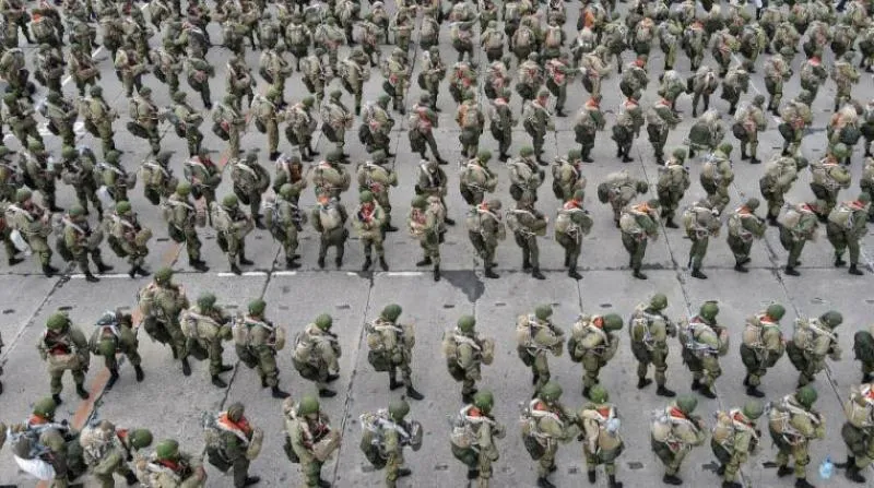 جنود روس يصطفون قبل التوجه إلى الحدود مع أوكرانيا (رويترز)