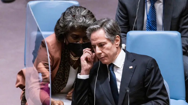 ونقل وزير الخارجية الأميركي أنتوني بلينكن الأزمة المتصاعدة على عجل إلى مجلس الأمن لتأكيد «المعطيات والأدلة» عن غزو «في غضون أيام» تحت غطاء «حملة تضليل وخداع» روسية عن إعادة بعض الوحدات العسكرية إلى الثكنات. وبدوره، أعلن نائب وزير الخارجية الروسي سيرغي فيرشينين عن «قلق بالغ» من الدول الست الأعضاء في رابطة الأمن الجماعي من «زيادة القدرات العسكرية» لحلف شمال الأطلسي قرب حدودها. وتعززت أجواء التشاؤم هذه بالردود «السلبية» التي تلقتها الخارجية الأميركية من الجانب الروسي حول الضمانات الأمنية التي تريدها.