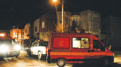 جانب من حالة الطوارئ خارج منزل «الصومالي» قبل اعتقاله أمس في احدى ضواحي العاصمة (أ ب)