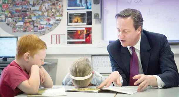 ديفيد كاميرون بصحبة الصغار ({الشرق الأوسط})