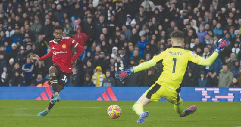 إيلانغا يسجل رابع أهداف يونايتد في مرمى ليدز (رويترز)