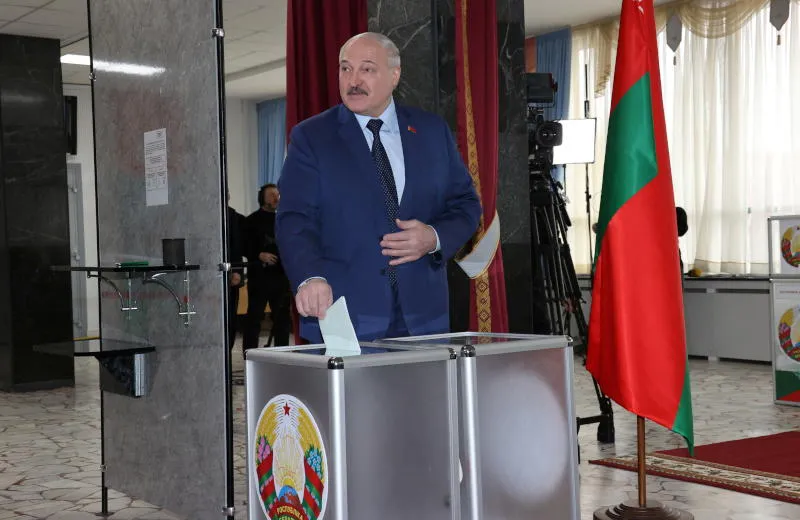 الرئيس البيلاروسي ألكسندر لوكاشينكو خلال الإدلاء بصوته في الاستفتاء (رويترز)