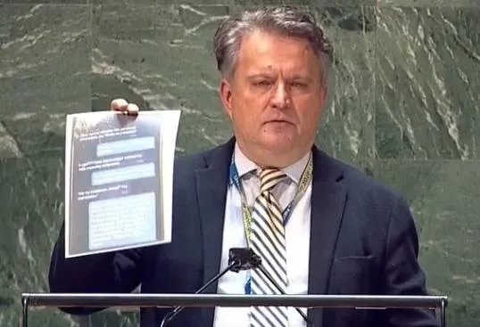 وأضاف للجمعية العامة: «شبكات التواصل الاجتماعي مدربة على كيفية صنع منتجات مزيفة لتشويه عمليتنا العسكرية. وعبر الشبكات الاجتماعية الأوكرانية، هناك 1.2 مليون قطعة من الأخبار والمحادثات والمراسلات المزيفة، من بينها تلك المحادثة التي قرأها المندوب الأوكراني».